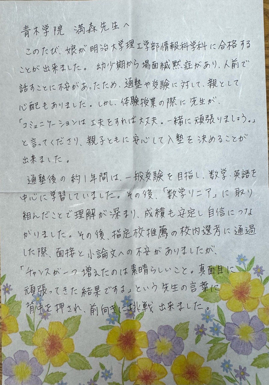 2026030301 2026年3月3日 WRITER 青木学院塾長 この記事を書いている人 - WRITER - 青木学院塾長 この記事を書いている人 - WRITER - 青木学院塾長 関連記事 - Related Posts - 緊急事態宣言対応 遠隔指導について 次に結果を出すために 子供は周りを真似るものだ 子供達が学力を伸ばす瞬間とは 最新記事 - New Posts - 「いつもと同じ」が学力を伸ばす 東京理科大学の学生が来ました 選択肢は親が 選択は子供が 令和8年2026年の県立相模原高校 大学入試 結果が出た